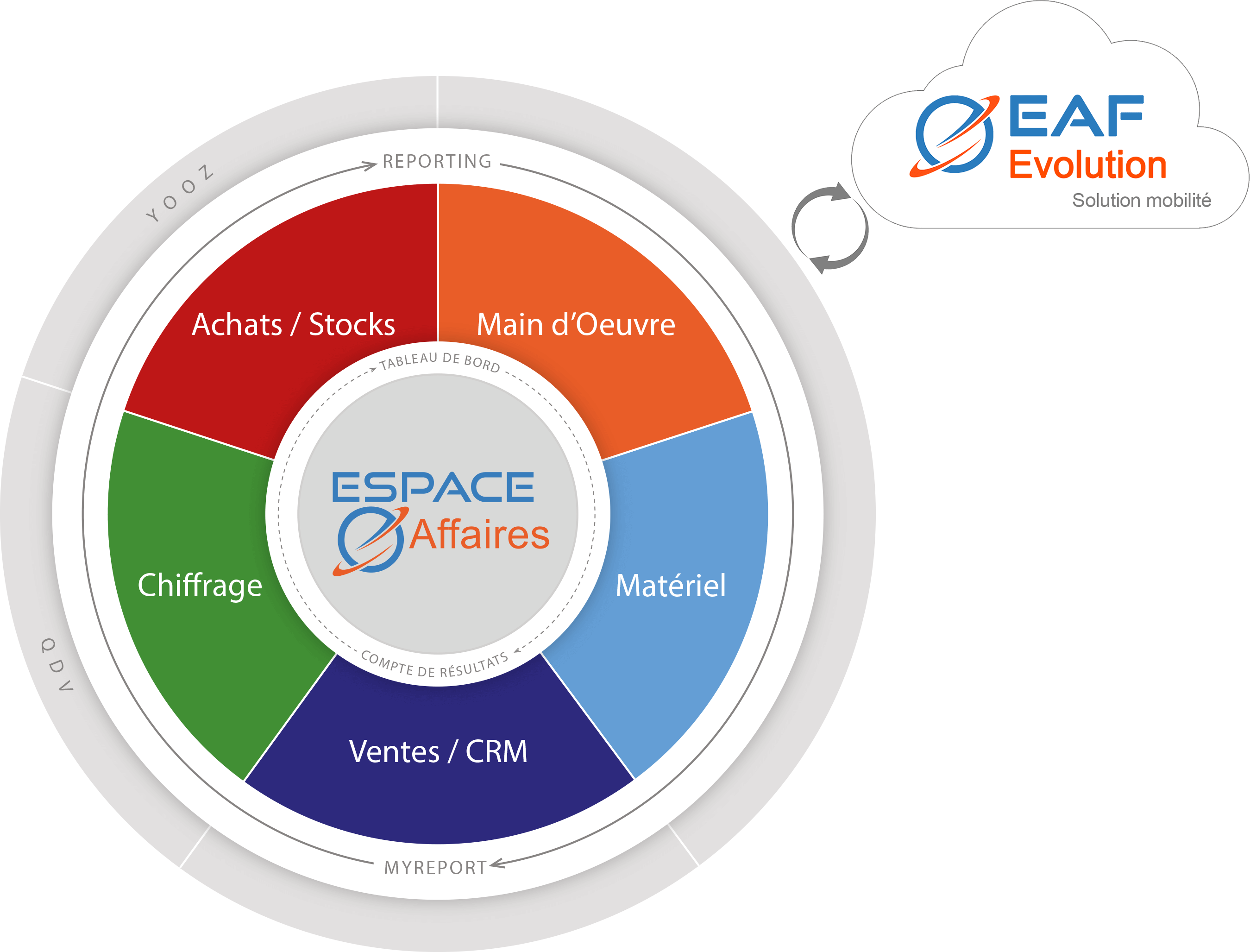 Espace Affaires intègre également EAF Evolution (solution mobile) et permet ainsi une gestion et une vision 360°, en temps réel et sur tout le cycle de vie des projets.