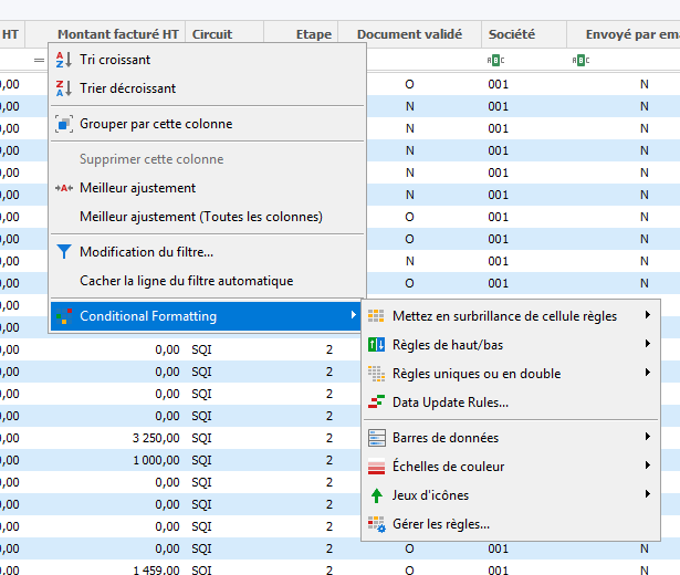 💡 Vous pouvez déterminer un affichage en vert de toutes les lignes au-dessus de 5 000€ !