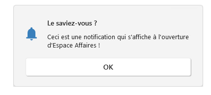 Espace Affaires permet aux administrateurs d’afficher des messages à l’ouverture du logiciel, en pop-up ou discret !
